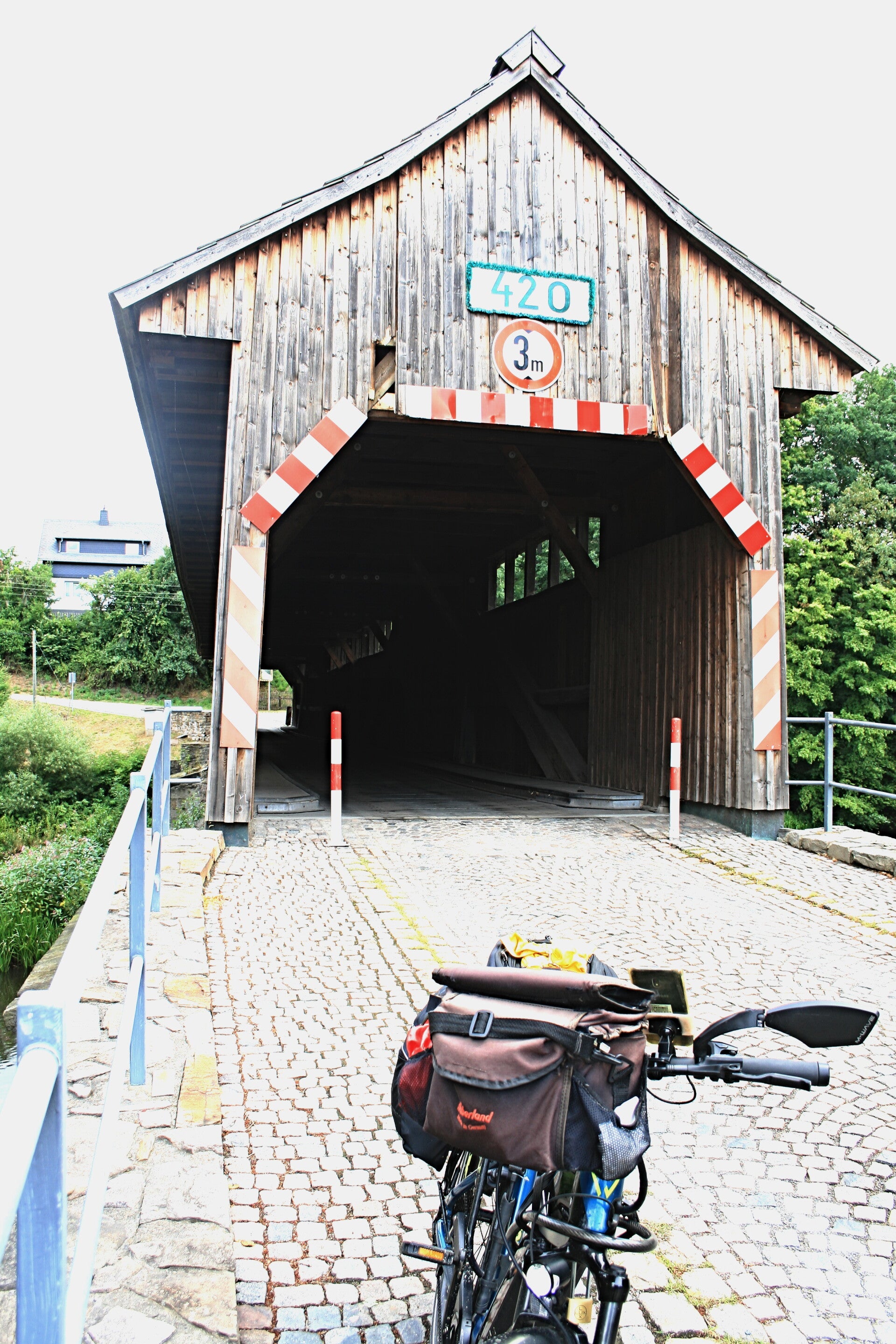 Das ist eine der Eisenbahnbrücken über die Flöha. Da hat man noch Steinquader auf Steinquader gesetzt, nicht die Pfeiler in Beton gegossen. Und die überdachte Holzbrücke über die Flöha ist auch bereits Jahrhunderte alt.
